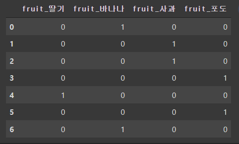 판다스에서는 get_dummies() 메서드를 사용하여 쉽게 변환이 가능하다.