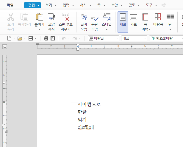f = olefile.OleFileIO('test.hwp') # olefile로 한글파일 열기
